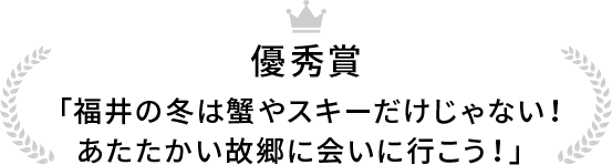 そして、「福井の冬は蟹(かに)やスキー場だけじゃない!あたたかい故郷に会いに行こう!」様と「映画『ふくいけん』予告編」様の作品も共にすばらしく、見て勉強になることも多かったです。この動画で、多くの方が福井はいいなと少しでも思っていただけたらと思っています。本当にありがとうございました。